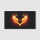 Angel fire heart with flaming wings on black background.