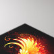 Angel fire heart with flaming wings on black background.