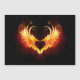 Angel fire heart with flaming wings on black background.