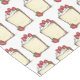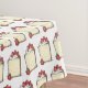 Tablecloth features an original marker illustration of a slice of angel food cake topped with whipped cream and red strawberries.