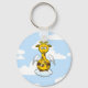 This super cute cartoon giraffe sits upon a puffy white cloud in the blue sky. He has a golden halo, a harp, and white angel wings.