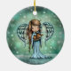 Angel holding Fawn Illustrated Art Ceramic Tree Decoration