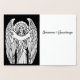 A dramatic angel, in silver foil with a halo, announcing the advent of Christmas. The inside reads "Seasons Greetings"