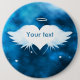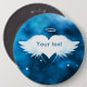 Create your own one of a kind personalised memorial pin/button. A lovely custom gift from the heart for anyone mourning the loss of a loved one when you don’t have the words to express how you feel. Beautiful white feather Angel wings with a white heart in between Beautiful white feather Angel wings with a white heart in between and a halo above. Has a beam of light shining down from the top and 3 little white floating hearts underneath with a blue and black starry night background. Also suitable for pet memorial. Can be personalised/customised with the name of your loved one.