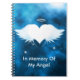 Create your own one of a kind personalised memorial notebook. A lovely custom gift from the heart for anyone mourning the loss of a loved one when you don’t have the words to express how you feel. Beautiful white feather Angel wings with a white heart in between and a halo above. Has a beam of light shining down from the top and 3 little white floating hearts underneath with a blue and black starry night background. Personalise/customise your notebook with the name of a loved one and/or initials, date of birth, date of death, etc. Delete the sample text and easily add your own in many available font styles and colours or purchase as is. Position the text anywhere. Also suitable for pet memorial. Can be personalised/customised with the name of your loved one.