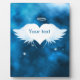 Create your own one of a kind personalised memorial display plaque. A lovely custom gift from the heart for anyone mourning the loss of a loved one when you don’t have the words to express how you feel.  Beautiful white feather Angel wings with a white heart in between and a halo above. Has a beam of light shining down from the top and 3 little white floating hearts underneath with a blue and black starry night background.  Also suitable for pet memorial. Can be personalised/customised with the name of your loved one.