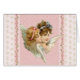 Angel on pink flowered background.