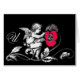 Cute black white vintage angel painting pink fuchsia flowers.