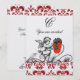 Cute black white vintage angel painting red flowers.Elegant swirls,red damask with a bright 3D ruby gem stone.This artistic and cool design is easily customisable with your text and initials as a wedding ceremony, nuptial announcement card ,place cards ,save-the-date , thank you ,baby showers,bridal showers,sweet 16,quinceanera birthday parties,romantic engagement showers, Christmas,,holiday ,office ,family reunions, celebrations,anniversaries,gatherings,or just about any event you wish! Digital design by BALDESIGN3D (c).