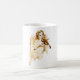 A coffee mug with a sweet image of an angel playing the violin with flowers in her hair. This vintage image looks weathered and faded from the hands of time, and has an worn yellowish tone.