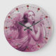 ANGEL PLAYING LYRA OVER THE CLOUDS Pink Fuchsia Large Clock