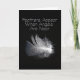 A photograph of a pretty black and white striped feather floating on a pond. It had drifted out from the shadows into the bright sunshine to shine above the dark water below. Some people say that feathers appear when angels are near. This blank card is customisable on the inner pages for you to add your own special words.