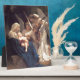 Vintage 19th century art depicting three angels playing music for baby Jesus and Mary.  Fine art by William Adolphe-Bouguereau.