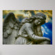 Great photo shot of an angel statue with sun rays through the clouds in the background.