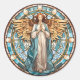 Bring a touch of heavenly beauty into your space with our Art Deco Angel Stained Glass stickers. This exquisite sticker showcases a graceful winged angel, palms placed together in prayer, adorned in flowing white and blue robes. The angel is framed within a captivating circular stained glass window motif, evoking the elegance of Art Deco design. Perfect for windows, glass doors, or any smooth surface, our Art Deco Angel sticker is a charming addition that adds a sense of divine tranquility to your surroundings.