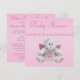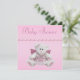 Elegant pink custom Baby Shower invitations for girls with a whimsical fluffy pink and white angel teddy bear with the words Sent from Above on her pretty pink nightdress. On the back of the invites are cute pink baby ballet shoes with digital bling diamonds and bows, a glamourous pink jewels pacifier and a pretty string of pink pearls on a sweet pink background. These classy invites are decorated both sides. Chic, trendy, modern girly glamour baby fashion invitations. Please note: All invites on Zazzle have flat printed images. Text, font and colour of font are all customisable. If you need assistance customising your product please contact me through my store and I will be happy to help.