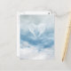 White feathered angel wings forming a heart shape on a background of blue sky and clouds