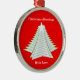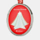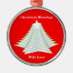 This abstract geometric modern tree has an angelic look. it is elegant and chic and minimal. It is artistically uniquely designed. It is in a circular ornament with a red background. The text and background colour can be personalised.