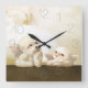 Angelic Duo: Smiling Bichon & Bao Bao Cloud Square Wall Clock
