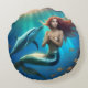 Angelic Mermaid Swimming With Dolphins, Round Cushion