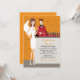Angels And Devils Halloween Invitation. These stylish Halloween party invitations feature a pretty woman dressed up in an angel costume all set for spirits at the bar with her handsome date, dressed up in a devil costume as he mans the bar. Fabulous costume details such as angel wings and devil horns make these super special!