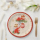 Christmas Party paper plates with adorable little Christmas angels painting an ornament for the Christmas tree on a background of gold snowflakes.