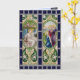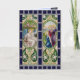 Send Easter Blessings to family and friends with this handsome religious card simulating stained glass in rich dark blues, bright spring greens, soft warm yellows, and silver greys. Done in the Liberty Style, the British version of Art Nouveau, two long rectangular panels with figured scenes arranged side by side represent two seated angels at the empty tomb on the left and the Three Marys come to anoint the body of Jesus on the right in oval frames surrounded with stylised greenery. + Inside: The relevant Gospel passage, Mark 24:1-6, provides context for the imagery. + Image Credit (RT 01): Antique images from an embossed postcard in chromolithography entitled A Peaceful Easter, Easter Hymns Series, No. 714, originally published by Raphael Tuck & Sons, London, England, and printed in Saxony, Germany, 1912, from the designer’s private collection. Quote (Mark 24:1-6): The Open English Bible (OEB), which is in the public domain under a Creative Commons Zero (CC0) license.