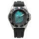 Has heft and feel of expensive stainless steel quartz wrist watches. Solid construction and good looks. Although it had a really top quality rubber strap, I substituted a stainless steel "Shark" style mesh strap, which I think is the most comfortable strap available. Perfect. True colors of original image. Clear, crisp image precisely aligned and spaced.