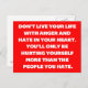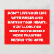 "Don’t live your life with anger and hate in your heart. You’ll only be hurting yourself more than the people you hate" quote.