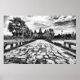 Black and white photo of the ancient Angkor Wat, viewed from the walkway. No people in this shot, just the timeless temple. Location: Angkor Wat, Cambodia. Copyright © Kate McKenna. All rights reserved. Illegal to use or duplicate without permission.
