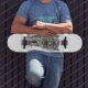 Angry Black Wolf in the Snow , wild Winter Skateboard