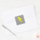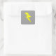 Angry lightning bolt, yellow on a grey background. A bolt of electricity with a cross face.