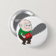 This is a cartoon illustration of an older bold man who's looking kinda angry at his chainsaw. Let's hope he's only planning on cutting down a tree and nothing more evil then that!