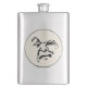 The product is a good size and came exactly as it was pictured. The lid is not attached to the flask, which could be dangerous on drunken nights... The print came out surprisingly well and looks very sharp. Would definitely recommend.