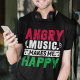 Angry Music Makes Me Happy T-Shirt. You can change the size of the design big or small. Keep the design front or back or on both sides is your choice.