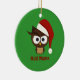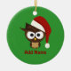 Angry Owl wearing Santa Hat Ceramic Tree Decoration
