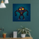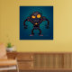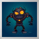Vector cartoon illustration of an angry robot getting ready for battle. This mean and nasty robot is dark grey with orange eyes and highlights.
