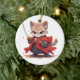 Angry Samurai style Cat Hero Ceramic Tree Decoration