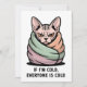 This bold cartoon illustration features an angry Sphynx cat wrapped tightly in a colorful blanket, delivering a sarcastic and relatable cold-weather quote. The clean digital style, flat colors, and intense orange eyes give the artwork a strong attitude and instant visual impact. Perfect for Sphynx cat fans and lovers of sharp pet humor who enjoy expressive characters, cozy themes, and modern minimalist illustration with personality.