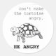Image created from one of my original sketches. It shows a hand drawn tortoise with mouth open and the words: “Don’t make the tortoise angry. HE ANGRY.” Original image is in black ink with black text; the image for darks is in neon with bright text.