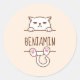 Angry White Cat Beige Custom Name Classic Round Sticker