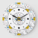 Black linear angles and circles in primary colours of red, yellow and blue make up the cool contemporary retro pattern that decorates this clock, reminiscent of Mid Century Modern design and the Atomic Age of the 1950's and 1960's.