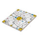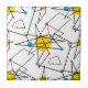 Black linear angles and circles in primary colours of red, yellow and blue make up this contemporary retro pattern reminiscent of Mid Century Modern design and the Atomic Age of the 1950's and 1960's.
