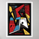 Dramatic and bold angular abstract art features bold lines, vibrant colours geometric shapes in red, yellow, blue, black and white. Great artwork for an office, dorm room or anywhere you'd like bold colours and expressive abstract art.
