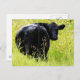 A single Black Angus steer separate from the rest of the herd of cattle, faces his backside to the camera and turns his head around for a portrait photograph. Tall grass in yellows and greens creates a nice background against the cow's dark colouring. Customise any item with your own funny saying, or cattle ranching business information.