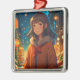 Pretty Anime girl outside on a winter night Christmas Ornament .