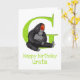 G is for gorilla! Or Greta, Gary, Geraldine... Add your child's name to this cute Animal ABC card from LeopardyNonsense, featuring an adorable baby gorilla with their dad. Contact me if you'd like to see this design in a different color.