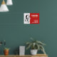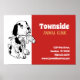 Graphic design of a dog in red background.