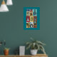 A poster with a unique and colourful collection of folk art style animals in a collage design. A variety of animals are found in this creative artistic design, which include a cobra, lion, dog, lizard, ostrich, zebra, rabbit, gecko, donkey and owl. This design has a unique style with a quaint and weird sort of flair. I like it!
