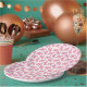 This kid's birthday party paper plate features a pattern of sweet animal cookies in the shape of a camel, giraffe, and lion. Each cookie is decorated with bright pink frosting and a few rainbow sprinkles. It was created to coordinate with the "Animal Cookie" birthday party collection. While this whimsical design was meant for a kid's birthday party, I think it would be perfect for a baby shower as well.